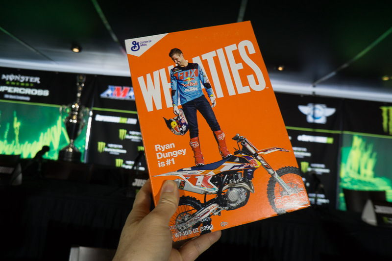 Scherzi a parte, i top rider intervenuti alla conferenza stampa di oggi sembravano tutti tranquilli e concentrati, ma sappiamo bene quale sia la vera storia. Il classico meeting di inizio anno è ormai una sagra delle ovvietà, con frasi tipo “Il campionato non si vince ad Anaheim 1 ma certamente lo si può perdere” abbondavano su e giù dal podio dove i magnifici 13 erano seduti: Tomac, Reed, Dungey, Stewart, Roczen, Seely, Canard, Pourcel, Anderson, Barcia, Bogle, Musquin e Millsaps.