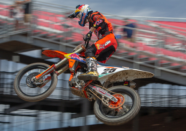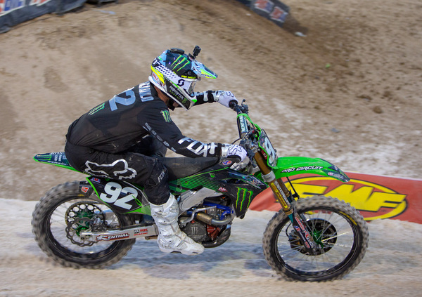 Purtroppo, però, le gare sabato sera non sono state esattamente all’altezza delle aspettative. I piloti in testa ai rispettivi campionati si presentavano tutti e tre con talmente tanti punti di vantaggio che solo un disastro gli avrebbe impedito di conquistare il titolo: Zach Osborne è sceso dietro al cancello con 15 punti da amministrare nella Costa Est, Aaron Plessinger ne aveva 13 nella Costa Ovest e Jason Anderson aveva ancora un margine di 14 punti nella categoria regina, la 450.