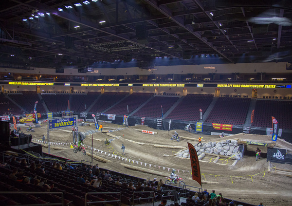 Il tracciato è in sostanza un misto tra una gara di Endurocross (specialità che guarda caso è nata proprio all'interno della Orleans Arena una decina d'anni fa), una prova di Supermoto (con le gomme tassellate) e un fettucciato vecchio stile. Come sempre in questi campionati d'Oltreoceano, i partecipanti sono centinaia, divisi in una miriade di categorie: il WORCS prevede anche ATV e Side By Side, ovvero quei mezzi fuoristrada che sembrano dei quad agli steroidi, con tanto di volante e gabbia di sicurezza. Il percorso, come detto, evolve con il livello dei concorrenti, dunque si parte dalle categorie Mini per poi passare ai Principianti, ai Veteran e finire poi con i Pro. La partenza stessa cambia a seconda di chi si presenta al via, con i Pro che chiudono la giornata alle 9 di sera, partendo praticamente al buio, a motore spento e schierati dietro a un tronco alto almeno 40 cm.