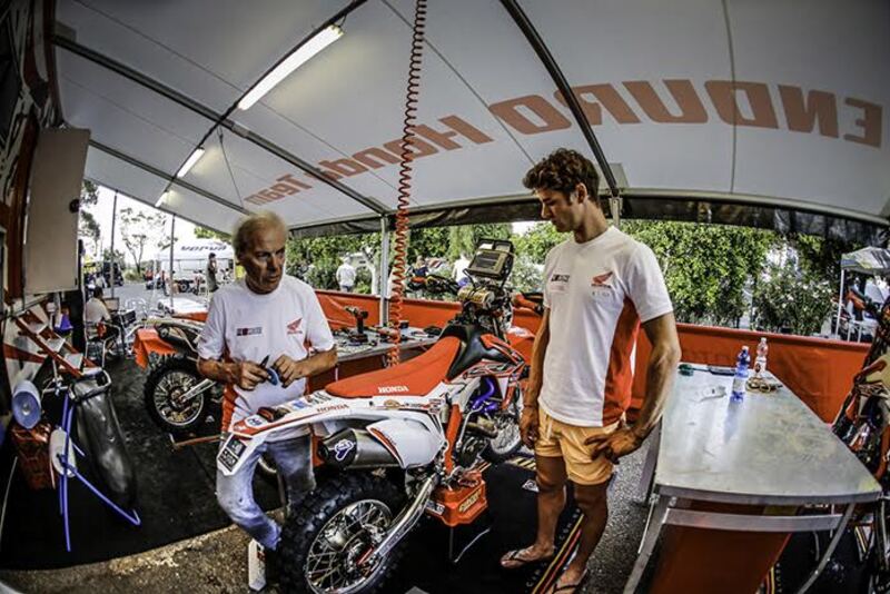 A Is Molas le operazioni vengono registrate come in un “time lapse”, con le vicende pre-gara che si succedono frenetiche ma allo stesso tempo in quel clima di gande relax caratteristico degli Eventi di Bike Village. Si compone il “paddock”, si effettuano le ultime operazioni di allestimento delle Moto da gara, i Piloti arrivano uno dopo l’altro, si incontrano, si aggiornano sulle comuni vicende agonistiche, salutano tecnici e meccanici, raccolgono le ultime novità dalle parole di Antonello Chiara e Gianrenzo Bazzu, gli ideatori del Rally. La grande famiglia dei Rally-Raid si riunisce ancora una volta, così come accade ad ogni evento del Campionato del Mondo. E in Sardegna, naturalmente, è tutta un’altra cosa.