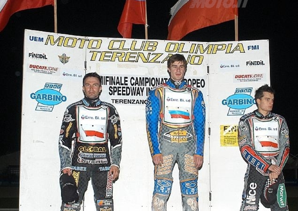 Nonostante il polacco Sebastian Ulamenk avesse mantenuto la leadership di gara sino alle ultime battute, il russo Denis Gizatullin ha avuto la meglio conquistando il podio della 1^ semifinale dell’Europeo Individuale presso gli attrezzati impianti di Terenzano nella serata di sabato 24 maggio. Serratissima la battaglia in pista tra i due piloti che a fine gara hanno dovuto affrontare lo spareggio per la prima posizione come pure il nostro portacolori Mattia Carpanese che con 9 punti ha lottato per il 6° posto durante il 2° spareggio. Il fortunato campione italiano ha avuto la meglio sul tedesco Wolbert la cui performance è stato guastata da noie meccaniche, qualificandosi così come riserva alla finalissima di Lendava (Slovenia) il prossimo 23 Agosto.