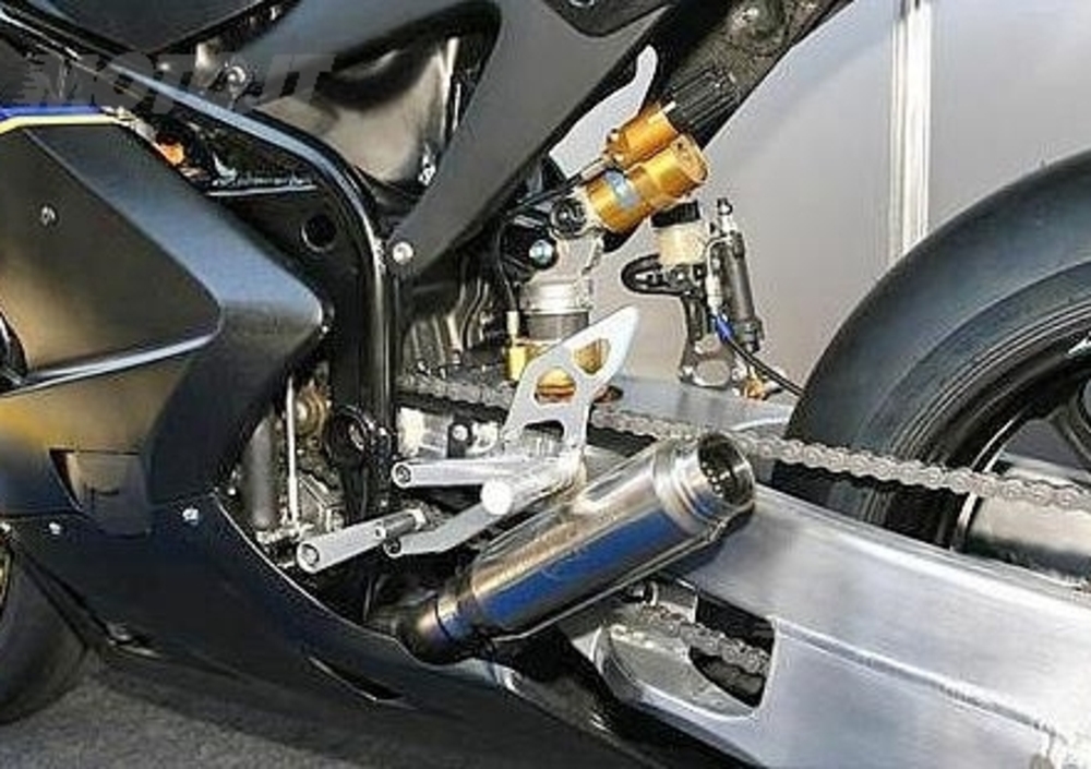 Il telaio in alluminio è realizzato da Moriwaki Engineering per ospitare il propulsore 4 cilindri di 600 centimetri cubici della Honda CBR 600 RR.
