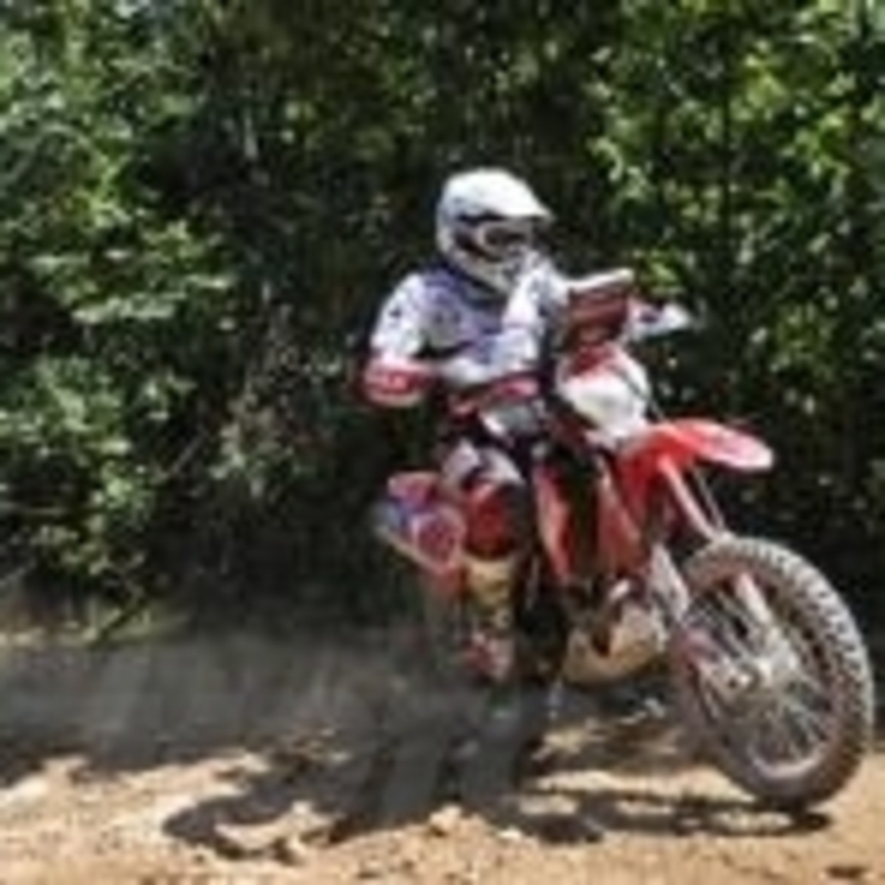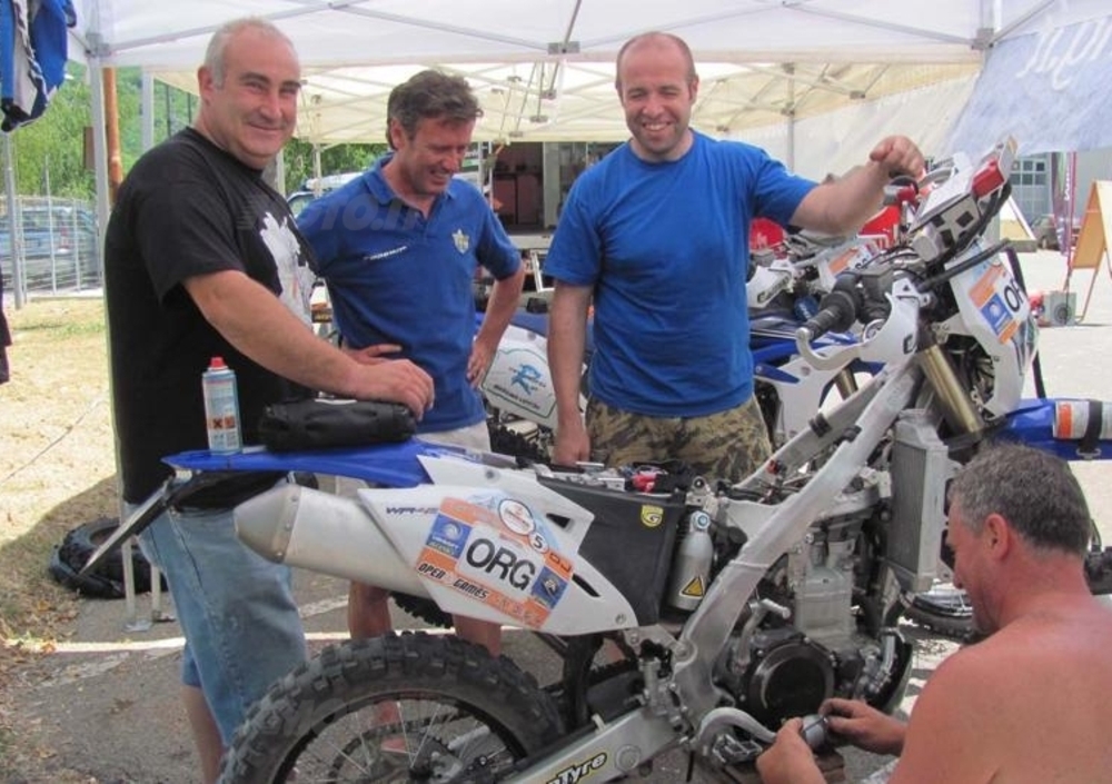 altissimo livello che vanno dal numero uno Andrea Mancini al sempre più veloce Glauco Ciarpaglini fino ai giovanissimi Emilio Procaccini e Leonardo Tonelli con i 50. Il personaggio più emblematico del Team è però, a nostro avviso, Antonio Colombo. Antonio vanta una carriera nel fuoristrada difficilmente eguagliabile. All’inizio nel Motocross, con le Fiamme Oro uno dei migliri talenti nazionali negli anni 70 pilota ufficiale per diverse Case. Poi Enduro e Rally sempre tra i protagonisti con diversi campionati italiani all’attivo. La sua vittoria più importante, almeno dal punto di vista mediatico, un Rally di Sardegna una decina di anni fa in sella alla famosa Yamaha TT 600 con trazione integrale. E’ ancora vivo il ricordo dell’arrivo al traguardo sulla spiaggia di Orrì in una giornata incredibile. Monica Goy è una delle anime dell’assistenza del Team AMX fin dalla prima ora. Prepara le cibarie per tutti, cura i piloti e a volte smonta anche il paddock. A Piediluco ha trovato un insolita soluzione per essere all’altezza di “Biscia” alias Sandro Calesini. Su un bel cavalletto anche lei per dargli una mano a montare il road-book.