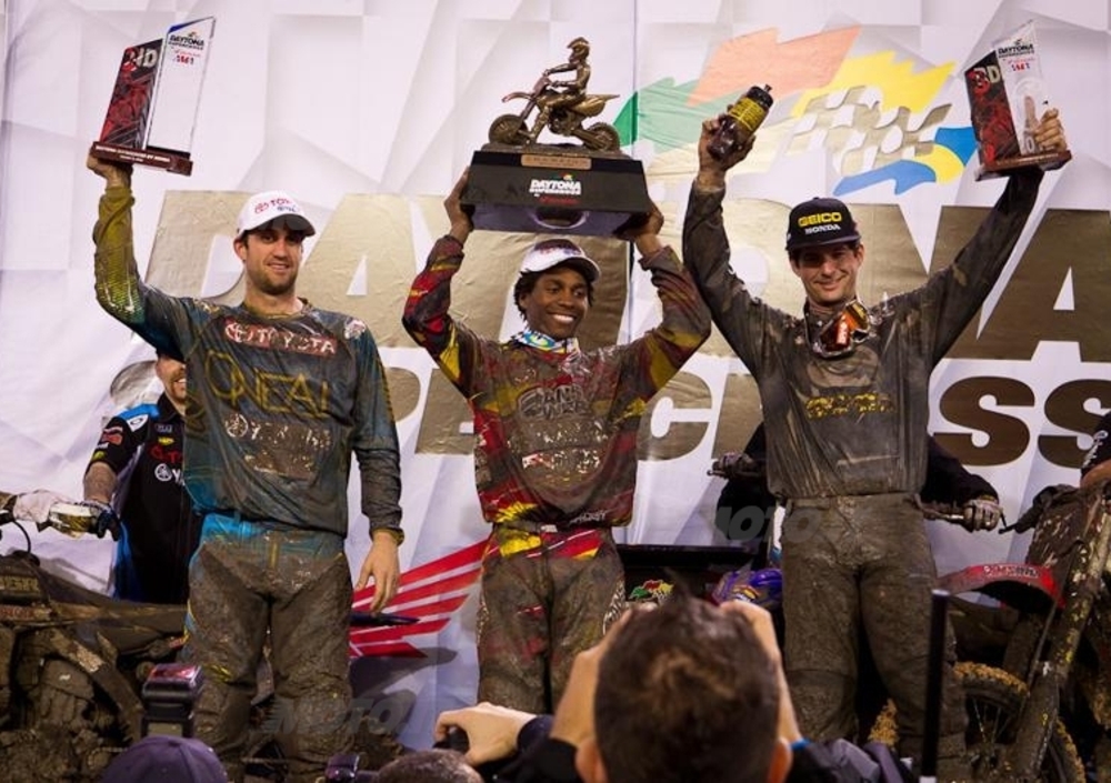 Sulla pista sabbiosa di Daytona, progettata niente di meno che da Ricky Carmichael, James Stewart vince il decimo round dell'AMA Supercross. Dietro di lui Davey Millsaps e Kevin Windham