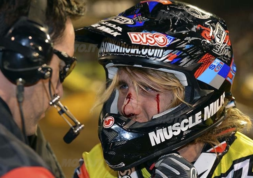 Prima del via della gara un annuncio a sorpresa, che ha rimbombato in tutto lo stadio: Kevin Windham si è presentato per il giro d’onore che si tiene abitualmente in apertura di serata, ma ha fatto solo quello perché ha subito dopo comunicato ai presenti che dopo 19 anni di onorata carriera appende il casco al chiodo in quanto dopo la pesante caduta di Houston dello scorso anno non se la sente più di prendere rischi.