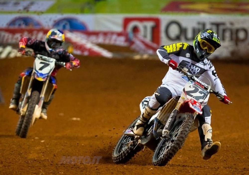 E' l'inizio di un duello che ha infiammato i 69mila spettatori del Georgia Dome. Un inseguimento che al 19esimo giro ha portato al sorpasso di Stewart ai danni di Reed. Il pilota Honda ha provato a rispondere però nel farlo ha centrato Stewart. Villopoto alle loro spalle ne ha approfittato e ha tagliato il traguardo per primo seguito da Ryan Dungey. Reed, più veloce nel rimontare in sella, ha salvato la gara con un bronzo lasciando Stewart fuori dal podio.