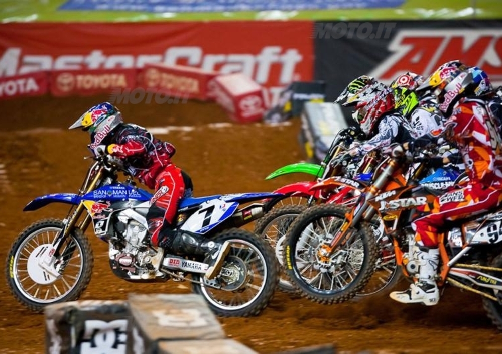 James Stewart conquista la holeshot del Main Event di Atlanta seguito da Chad Reed, Trey Canard, Ryan Villopoto, e Ryan Dungey. Un errore di Stewart al terzo giro ha avvantaggiato Reed che è passato al comando. All'ottavo giro Villopoto è indietro di 4 secondi. A metà gara, Stewart tallona Reed che aveva tentato la fuga.