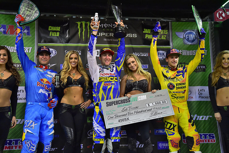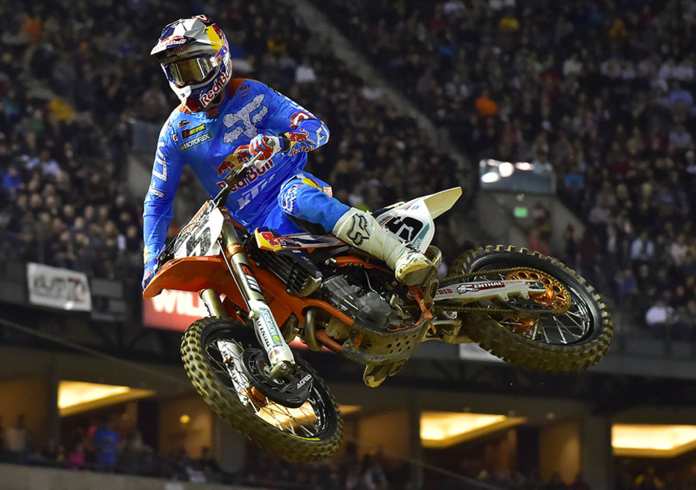 E’ stata un po’ come la rivincita della sfortunata apertura di Anaheim, che a distanza di una settimana lo lascia tuttora incredulo di aver buttato al vento un possibile podio a causa di un paio di scivolate del quale non si è reso bene conto neppure lui. Nella seconda tappa Eli (Ilai, come pronunciano oltreoceano… ) Tomac ha però rimesso subito le cose a posto e tanto per confermare il suo potenziale che la gara prima era solo emerso con il miglior tempo spiccato in prova, si è aggiudicato orgogliosamente la sua prima vittoria supercross della classe regina arrivata dopo i due secondi della scorsa stagione.