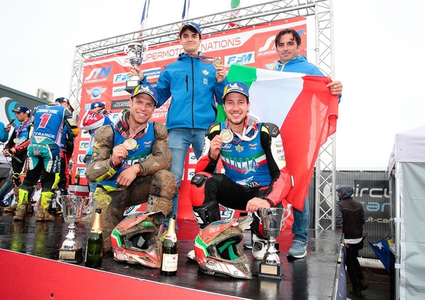 La Maglia Azzurra ha conquistato ancora una volta il podio al Supermoto delle Nazioni. Sul circuito parigino di Carole, Luca D’Addato, Diego Monticelli ed Elia Sammartin hanno ottenuto il 3° posto alle spalle della Francia e della Francia Junior, precedendo Repubblica Ceca e Germania. Un risultato di prestigio che ha visto la nazionale italiana dare seguito a una striscia positiva iniziata nel 2012: nelle sette edizioni a cui hanno partecipato, gli atleti azzurri sono sempre saliti sul podio.