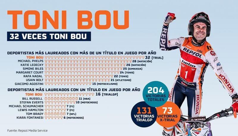 Nessuno sportivo ha all'attivo un palmarès come quello di Bou. Quello che si avvicina di più è Michael Phelps con sue 28 medaglie olimpiche, seguono Simone Biles e le sue 25 medaglie d'oro, Margaret Court e i suoi 24 Grande Slam, i 22 di Rafa Nadal, le 26 medaglie di Katie. Se vogliamo parlare di moto, Giacomo Agostini con i suoi 15 di Motomondiali non arriva nemmeno alla metà.