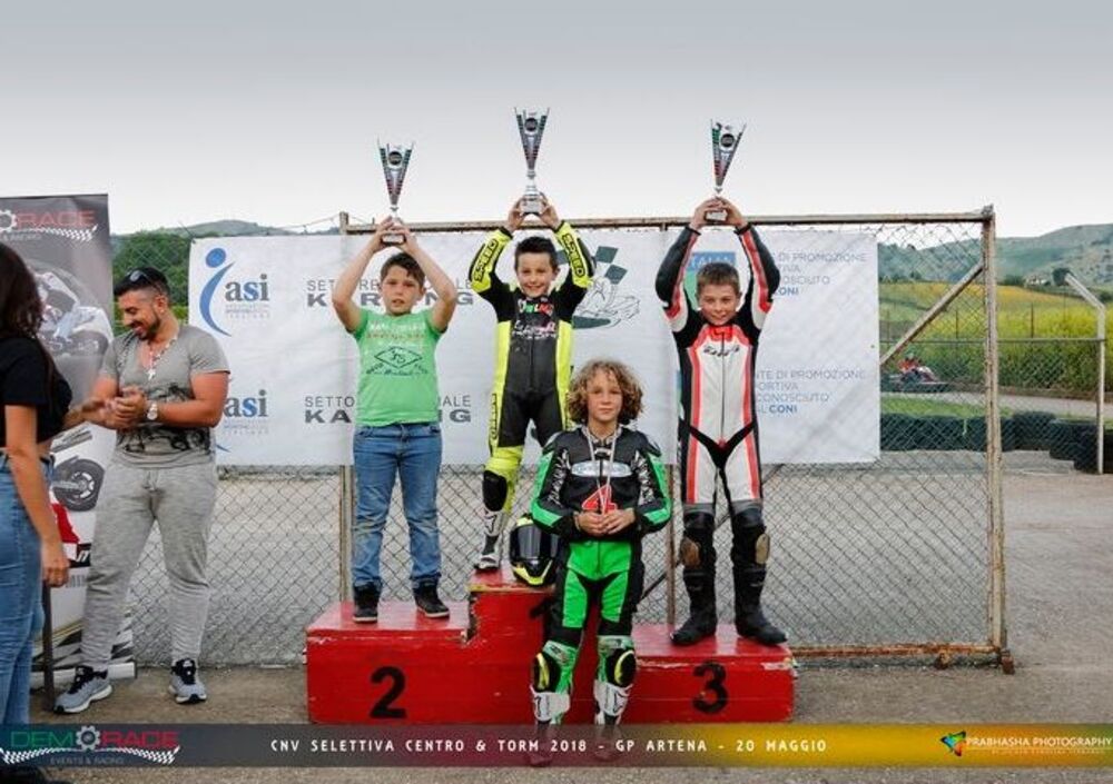 timidamente e semplicemente afferma: “Ho fatto un buon tempo, è andata bene!”. In Gara 1 però è proprio Ruotolo a sbagliare e sbaglia la partenza, errore che gli costa ben 10'' di penalità. Durante la gara riesce ad accumulare 9''.2''' dal secondo Justin Toti, non sufficienti per scontare la penalità e rimanere primo, consegna così la vittoria a Toti. Durante il secondo giro Venturini ed Enio Junior Machetti hanno un contatto che costringe il primo al ritiro ed il secondo a chiudere la gara in ultima posizione. In Gara 2 è proprio Venturini ad avere lo scatto migliore in partenza: da ottavo riesce a girare secondo dietro Ruotolo alla prima curva, salvo poi essere passato da Simone Talamonti e Machetti e terminare la gara quarto. Talamonti ha la meglio su tutti, vincendo la gara con quasi cinque secondi di vantaggio, sotto gli occhi del papà tesissimo: “con il bagnato fa sempre delle belle gare, poi negli ultimi giri commette l’errore. Sono stato con l’ansia fino alla bandiera a scacchi ma questa volta è andata bene!” afferma. Simone molto più rilassato del papà invece afferma: “ ne avevo di più, ho visto che ad inizio gara ero troppo vicino al primo ma non riuscivo a passarlo così ho lasciato prendesse un po’ di margine per poi preparare l’attacco”.
