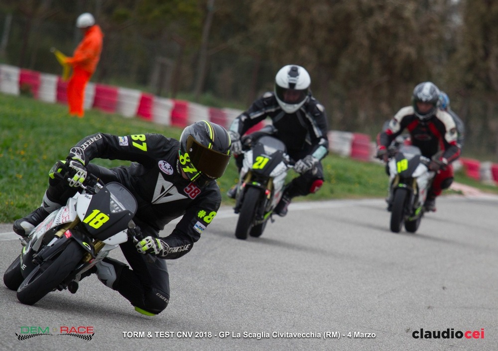 E’ stata l’occasione per incontrare alcuni piloti Pitbike e Ohvale del campionato CNV Selettiva Centro. Purtroppo, causa pioggia, le sessioni di test sono terminate alle ore 15, tuttavia alcuni hanno approfittato della presenza del tecnico ufficiale CNV, Daniele Picca, per punzonare il motore della propria moto. La prima gara dell’anno per il CNV Selettiva Centro è ormai alle porte: si terrà l'8/9 Aprile ad Arce (Fr).