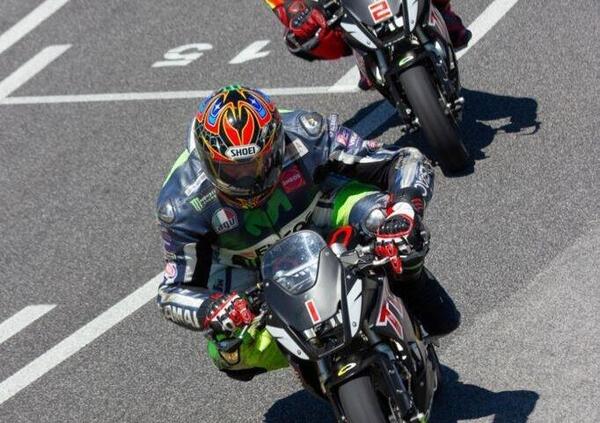 Per la batteria SMV2 è Alberto Giani dello TST Racing Team a scattare davanti a tutti. In Gara1 una buona partenza di Giani, subito alle prese con Giuseppe Esposito del team Pit Stop 46, che dopo poche curve si mette in testa alla gara e tenta la fuga. Dietro di lui Giani ed Antonio Esposito del team Pit Stop 46, iniziano la bagarre per aggiudicarsi la seconda posizione. I primi tre si mantengono vicinissimi per tutta la gara mentre dietro di loro li divide un bel margine dagli inseguitori. Il duo Esposito conquista la prima è la seconda posizione seguiti dal pole man. Proprio Esposito a fine gara afferma: “Ho pensato molto a gestire la gara al meglio perché non mi sentivo sicuro come gli scorsi anni su questa pista. Ho cercato di controllare il più possibile per evitare cadute, non posso che essere contento del risultato”. Quasi un replay la partenza di Gara2 con Giani che si deve difendere fin da subito da entrambi gli Esposito questa volta. Giuseppe Esposito taglia ancora la bandiera a scacchi in prima posizione affermando: “A parte le condizioni meteo siamo stati un po’ in difficoltà con la messa a punto della moto, in Gara2 però ho alzato un po’ il ritmo soprattutto con i miei avversari che sono risultati molto preoccupanti”. Secondo gradino del podio invece Giani mantiene la posizione seguito dall’altro Esposito che chiude il podio.