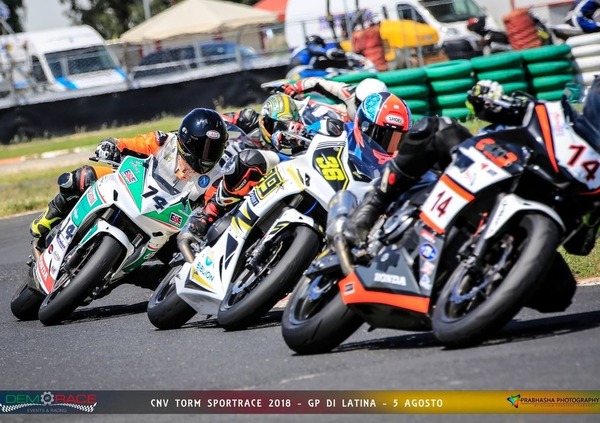 Le temperature infuocate non hanno fermato i tantissimi piloti che domenica 5 Agosto si sono ritrovati al Circuito Internazionale Il Sagittario di Latina, per prendere parte alle diverse gare della giornata. Trentadue i gradi registrati, che non hanno minimamente alterato la voglia di darsi battaglia, e dare spettacolo, di tutti i piloti. Una domenica che ha ospitato le gare del TORM, del CNV MOTOASI.IT Selettiva Centro (4° Round) e della SportRace2018Cup (4° Round).