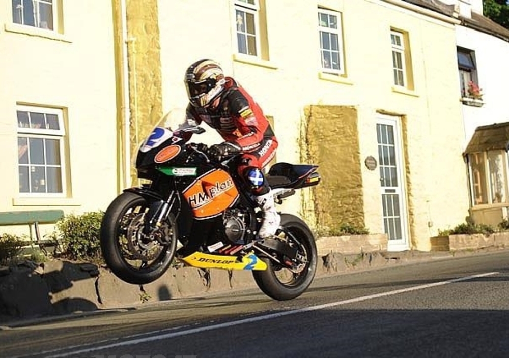 Quindicesimo trionfo dell'ormai mitico John Mc Guinness nel Dainese Superbike TT, posticipato di due giorni a causa della pioggia battente, e partito dunque oggi alle 11,00 sul terribile quanto avvincente circuito stradale dell'isola di Man, dal 1907 teatro del Tourist Trophy. "Big Mac", tra l'altro, ha percorso i sei giri da 60,7 km ciascuno alla media record di 130,442 miglia orarie (corrispondenti praticamente a 210 km/h!), percorrendo un giro record i 17'21"29 e distanziando di oltre 18 secondi Steve Plater, suo compagno in seno al fortissimo team HM Plant Honda. MacGuinness ha così portato a casa la sua quindicesima vittoria al TT, superando quindi le 14 del leggendario Mike Hailwood e piazzandosi così sul secondo gradino di un podio ideale ancora oggi dominato da un'altro idolo del motociclismo, britannico e non: il compianto Joey Dunlop.