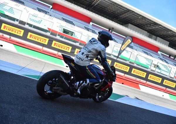 È arrivato, poi, il turno della RSV4 1100 Factory, pazzesco 224 cv: come apri il gas per uscire dalle curve senti il mono che pompa e lavora come un matto… le Diablo Supercorsa SC permettono una performance incredibile, mi è piaciuta tanto la gomma davanti perché sentivo che mi sosteneva benissimo in ingresso curva con i freni in mano.