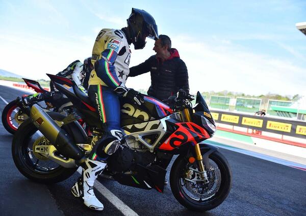 Sono partito con la Tuono perché ero troppo curioso: con il manubrione, l’impostazione è simile al motard. Mi sono divertito: mi sembrava di girare con il mio motard al Mugello, solo che aveva 100 cavalli in più