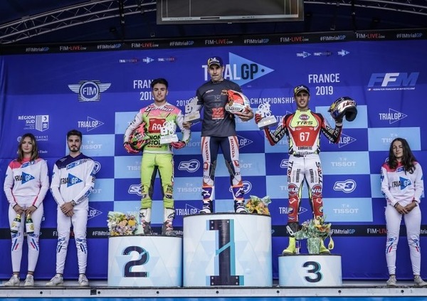 Grande suspense nelle posizioni a seguire dove assistiamo ad una lotta all’ultimo piede tra il catalano Gabriel Marceli ed il nostro Matteo Grattarola entrambi su Montesa rispettivamente secondo e terzo, staccati di una sola penalità. Tra i due oramai il divario in campionato è di un solo punto a favore di Teomat con la decisiva sfida finale che si giocherà il 22 settembre stavolta in casa di Marceli a La Nucia nel GP di Spagna, sicuramente un finale al cardio palma come già visto lo scorso anno a Pietramurata, dove protagonisti fu ancora Grattarola e Toby Martin.