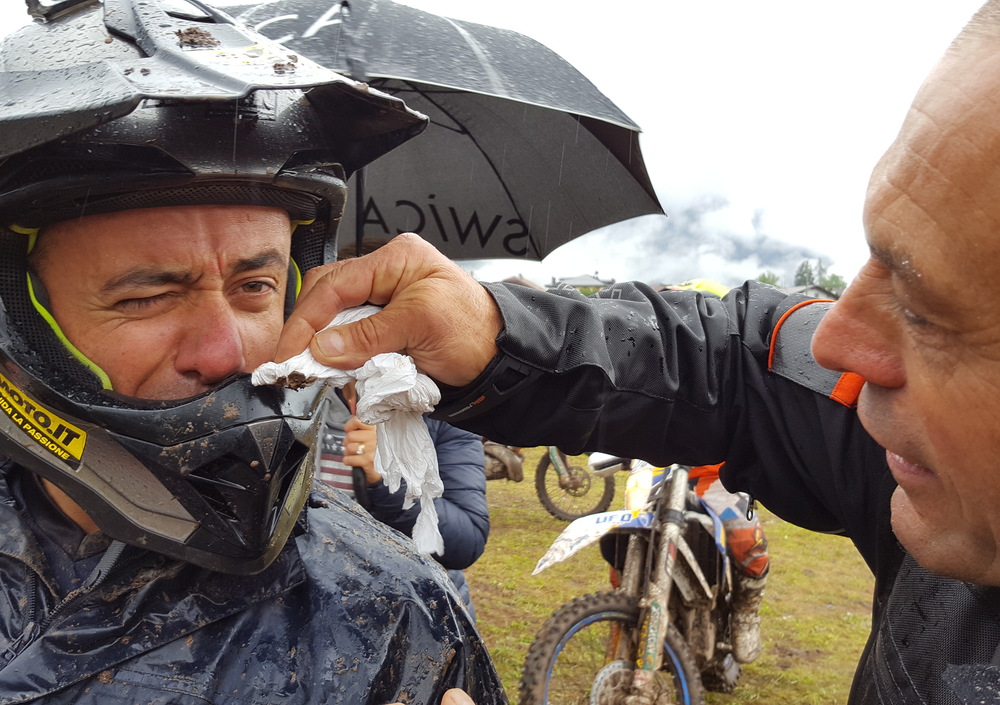 Mannaggia, una volta nella vita ti capita di andare in Cadore a fare enduro, e ti ritrovi sotto un diluvio universale, con temperature in picchiata. Vedi così il lunghissimo e meraviglioso fettucciato liquefarsi in un mare uniforme di fango, mentre la prova in linea giro dopo giro sfodera viscide radici che non trovi manco in Finlandia.