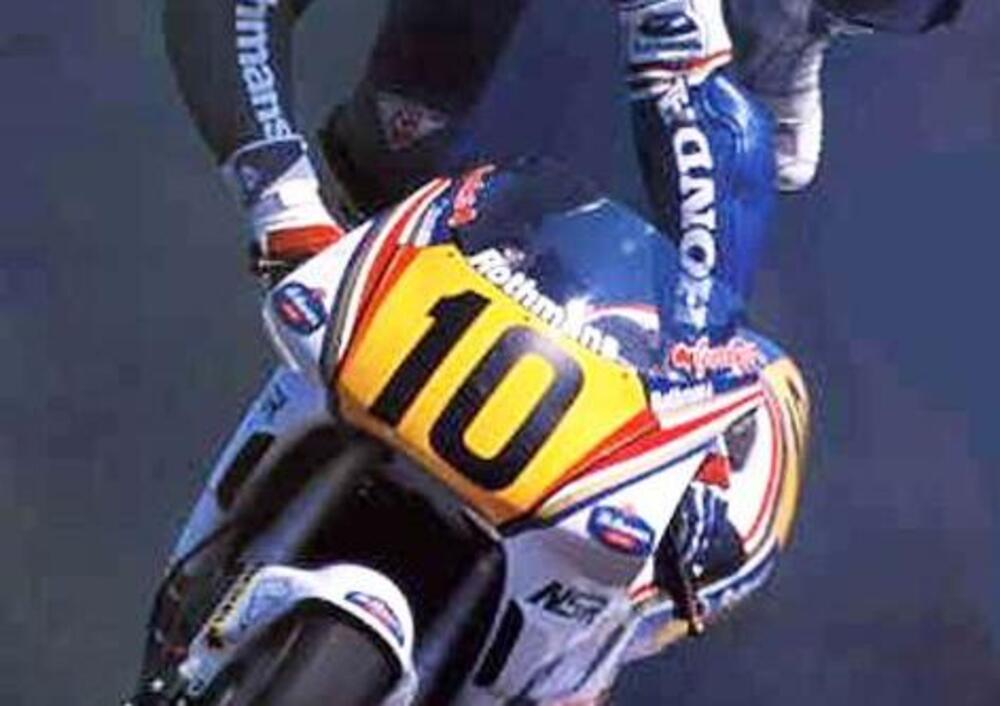 Ci teniamo a menzionare anche “Rocket” Ron Haslam, piazzatosi quarto alle spalle di Lawson con la sofisticata Elf-Honda dalla futuristica ciclistica progettata dall’ingegner De Cortanze, ex Renault F1. Classe 1956, stimatissimo anche come collaudatore, e noto per le sue lunghe basette, “Rocket” Ronha terminato la stagione seguente all’11° posto, sempre con la Elf-Honda, e all’8° nell’89, ma con la Suzuki RG. Nel ’90 fu 15° con la Cagiva e nel ’91 fini 25°, evendo corso solo la gara di casa, a Donington, con la Norton Wankel. La sua unica, e ultima apparizione successiva fu ancora a Donington, cui partecipò come wild card con una Roc-Yamaha. Dopodiché Haslam senior passò con successo alle gare per moto derivate di serie a livello nazionale, prima di seguire a tempo pieno la carriera del giovane Leon, del quale ovviamente è sempre stato l’illustre consigliere. A maggior ragione ora che è pilota ufficiale del team Suzuki Superbike, cui ha già regalato la vittoria nella prima manche del mondiale 2010, a Phillip Island.