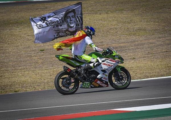 A Portimao lo spagnolo Adrián Huertas, nato a Madrid il 21 agosto 2003, ha conquistato il titolo di Campione del Mondo Supersport 300. E’ stato un campionato dominato dai piloti della Kawasaki, visto che dieci delle prime dodici posizioni della classifica generale del campionato sono occupate dai piloti della casa di Akashi. A contendersi il titolo sino alla penultima gara sono stati Huertas, l’inglese Booth-Amos ed il compagno di squadra dello spagnolo nel team MTM Kawasaki l’olandese Jeffrey Buis, che si era laureato campione lo scorso anno e che quest’anno ha chiuso in terza posizione.