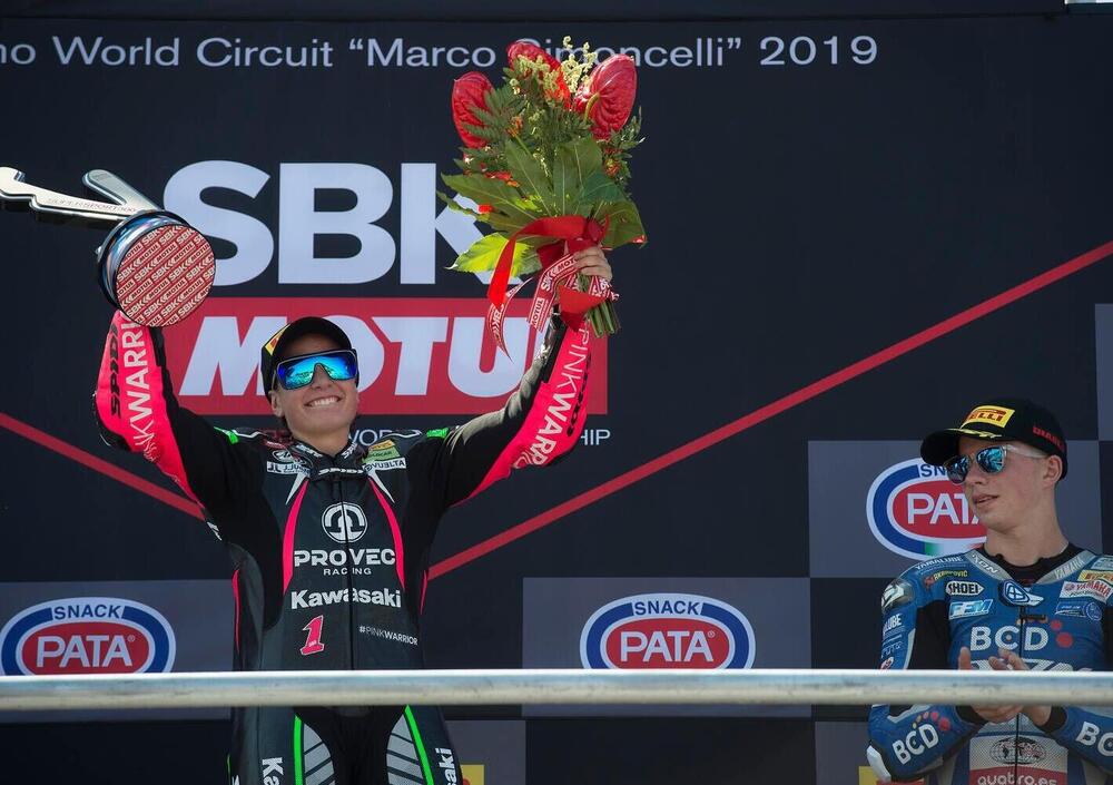 Ana Carrasco è stata la prima donna ad aggiudicarsi un titolo mondiale. E’ accaduto nel 2018 quando la giovane pilota spagnola ha conquistato il titolo di campione del mondo della classe 300. In casa Carrasco le moto sono di casa (il padre ha un officina meccanica e la sorella corre a sua volta in moto) e Ana ha iniziato giovanissima a gareggiare con le minimoto. Dopo aver corso nel CEV Moto3 a soli 16 anni, ha fatto il grande salto nel mondiale, debuttando nel 2013 nella gara del Qatar. Qualche anno dopo però ha scelto di passare alla classe 300 delle derivate dalla serie e nel 2017 ha vinto la sua prima gara sulla pista di Portimao.