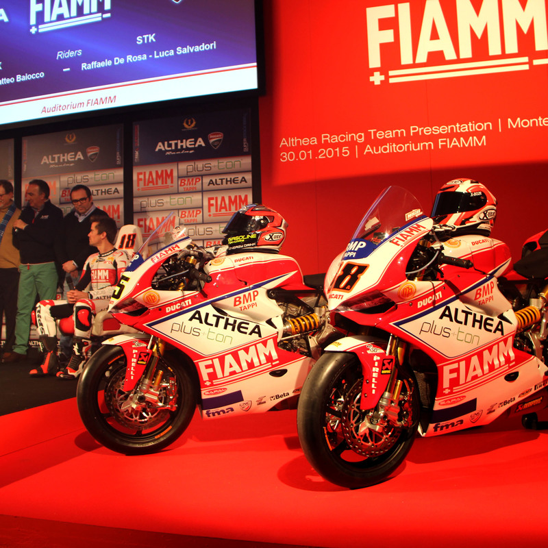 E c’è anche un nuovo sponsor, FIAMM, che torna protagonista sulle carenature delle Ducati del team Althea sulla scia di un passato che gli appassionati ricordano bene: il marchio vicentino ha contribuito a scrivere la storia per immagini della Formula 1 e di tante specialità del motociclismo. Ma lasciamo la parola ai diretti interessati, che hanno diverse cose da dire.