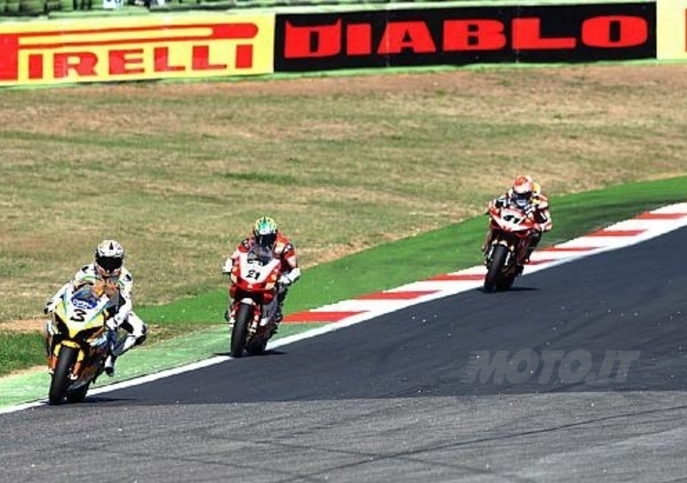 Corser il primo ad abbandonare la sfida, a causa di una scivolata innoqua ma dolorosissima in chiave Mondiale. Davanti a tutti Bayliss e Biaggi, dietro a loro Haga e Toseland.