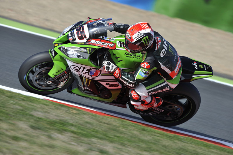 Pronti via e le due Kawasaki sono davanti a tutti. In una giornata soleggiata ma con temperature basse (asfalto a 20 gradi), Sykes è primo, ma Rea lo tallona da vicino e gli cede solo 17 millesimi di secondo. Le verdone iniziano subito forte, così come Haslam che si piazza al terzo posto a 46 millesimi dalla vetta. L’inglese dell’Aprilia è alla ricerca di una sella per il prossimo anno ed in questo primo turno ha mostrato una determinazione che non sempre quest’anno ha caratterizzato le sue prestazioni. Quarta piazza per Davies che si è preoccupato ovviamente più della messa a punto della sua Panigale che non del tempo sul giro e precede il padrone di casa Guintoli, desideroso di mettersi in mostra davanti al suo pubblico. Sesta posizione per Lowes davanti alla coppia italiana formata da Canepa e Badovini. Questa mattina il pilota del team Althea è sempre stato nelle posizioni alte della classifica, dando continuità a quanto aveva fatto vedere nelle prove di Jerez. Badovini al contrario, sembra essersi buttato alle spalle le difficoltà incontrate nel weekend spagnolo ed è ottavo a poco più di sei decimi da Sykes.