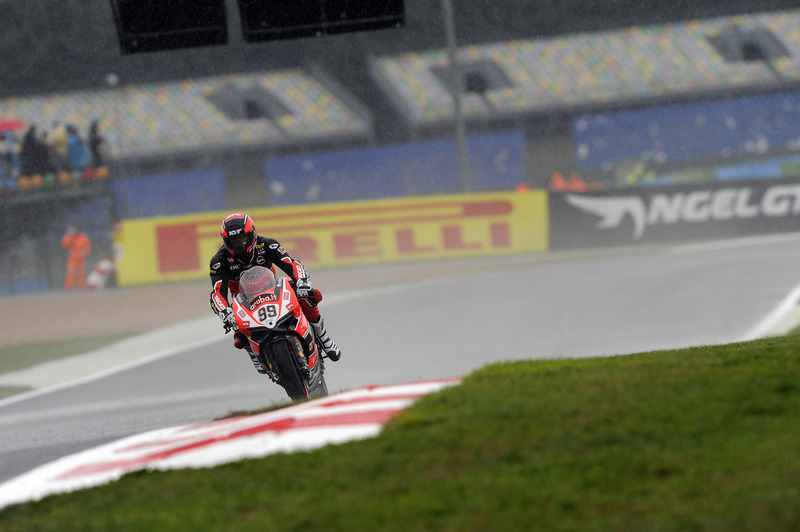 Nemmeno la pista bagnata ferma le Kawasaki e l’insaziabile Rea, che supera Sykes nel finale. Terzo posto per Guintoli. Solo sesto Davies davanti ad un bravissimo Baiocco