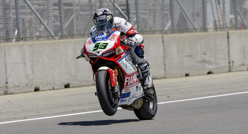 Lo avevamo scritto nella nostra preview che Canepa avrebbe potuto essere la sorpresa positiva di questa trasferta americana e per ora i risultati ci danno ragione. Niccolò si trova particolarmente a proprio agio sui saliscendi di Laguna ed il suo quinto tempo, a poco più di tre decimi dal cannibale Rea, lo ha confermato. Canepa precede Giugliano e a completare il terzetto italico ci pensa Ayrton Badovini che termina la sessione al sesto posto assoluto. Il pilota del BMW Motorrad Italia SBK team ha fatto segnare subito il suo miglior crono, ma dopo una ventina di minuti si è dovuto fermare a causa di problemi tecnici. La posizione nella quale l’italiano si era fermato è stata considerata poco sicura dalla Direzione di Gara che ha interrotto per pochi minuti la sessione con la bandiera rossa. Ayrton non è più rientrato i pista ma il suo tempo gli ha comunque assicurato la sesta piazza.