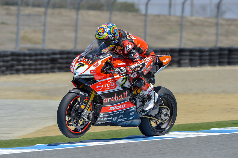 Risalgono la classifica i due piloti Aprilia Torres e Haslam. Secondo un copione già visto i piloti di Noale seminano il venerdì per poi raccogliere il sabato. Haslam sistema al meglio la sua RSV4 mentre Torres impara in fretta circuiti quasi sempre sconosciuti. Anche a Laguna Seca il simpatico spagnolo ha dimostrato di imparare molto in fretta e se dovesse finalmente riuscire a sfruttare la gomma morbida da tempo, oggi pomeriggio potrebbe dire la sua. Dietro ai sei ufficiali ecco un ottimo Canepa, anche oggi velocissimo ed autore di un settimo tempo che lo catapulta direttamente in Superpole 2, assieme a Lowes, Guintoli e Salom.