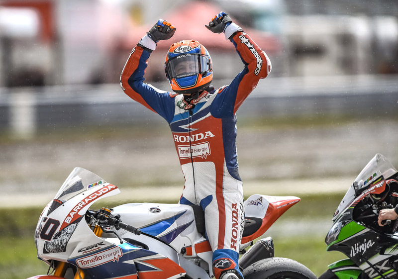 Il suo primo podio in Superbike gli viene gentilmente concesso dal suo compagno di squadra, ma lui è bravo ad ammetterlo. Che sia un grande professionista non ci sono dubbi, così come non ci sono dubbi che debba ancora ambientarsi al clima rovente della Superbike, dove spesso devi rischiare tanto per poter vincere. Specialmente se guidi una CBR.