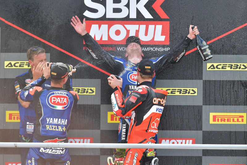 Rea a terra. Non succedeva dal 1 Ottobre 2017, quando a Magny Cours, con il titolo già conquistato matematicamente, colpì la moto di Laverty che gli era caduto proprio davanti. Zero punti per Johnny quindi, che però ne ha ancora 65 di vantaggio su Davies, 74 su VdMark e 91 su Sykes. Il tre volte campione del mondo ha perso una battaglia, ma non certo la guerra. Con il cannibale fuori gioco avrebbe potuto essere il giorno di Melandri, ma ancora una volta (come a Jerez lo scorso anno) la sfortuna si è accanita contro il pilota della Ducati, e così a festeggiare è stata ancora la Yamaha: questa volta però con Lowes, che non sbaglia più e vince la sua prima gara in Superbike. La Kawasaki è ancora la moto da battere, ma alle sue spalle non c’è più la Panigale, bensì la R1.