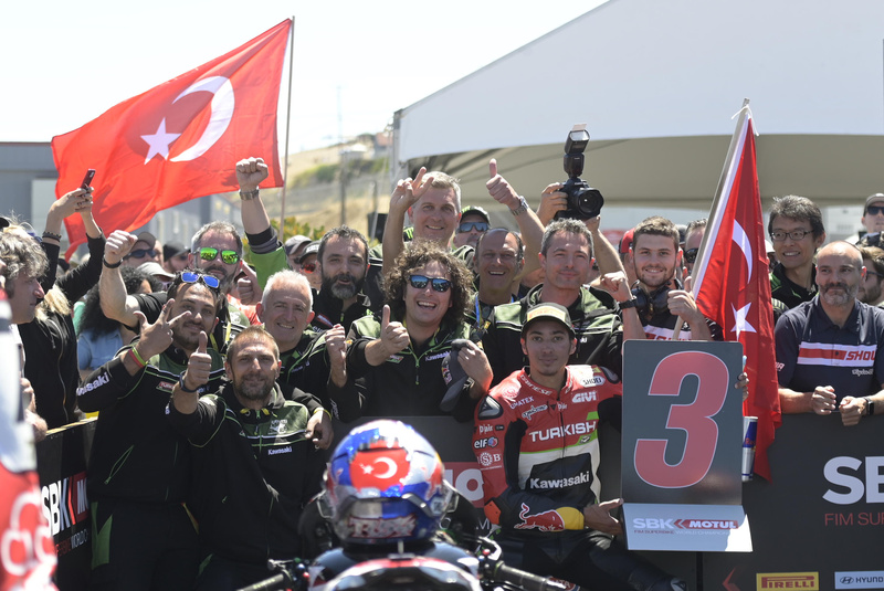 Grande gara di Razgatlıoğlu, terzo sotto la bandiera a scacchi. Per Toprak è l’ottavo podio in carriera ed il sesto in questo campionato. Sulla pista dove l’anno scorso era caduto rovinosamente al cavatappi, il giovane pilota turco ha dimostrato la solita grinta spingendo forte sin dai primi giri, nel tentativo di riagguantare i piloti in fuga. Rea e Davies non gli hanno permesso di avvicinarsi, ma grazie al suo ritmo il pilota del Turkish Puccetti Racing ha staccato i propri inseguitori ed ha conquistato un altro risultato che lo conferma tra i top rider della categoria. Quarta posizione per Tom Sykes, che perde il duello con il giovane pilota turco, ma porta a casa un buon risultato sulla sua BMW.