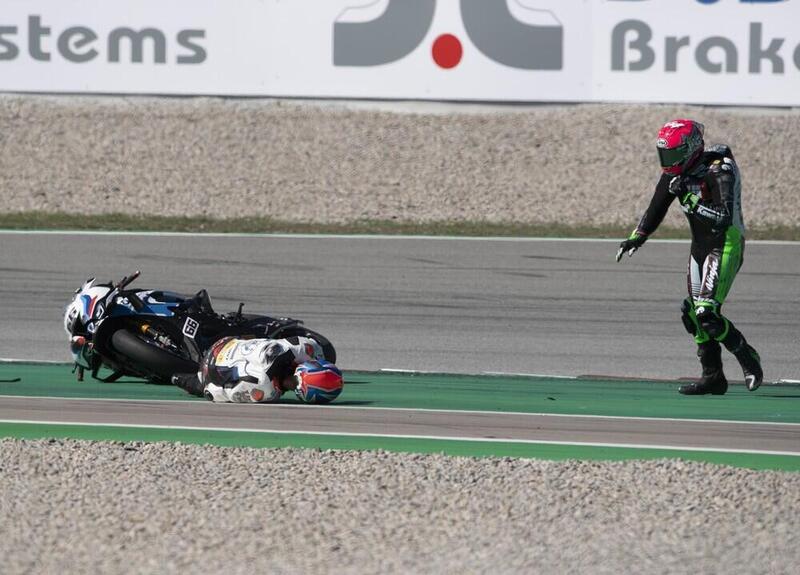 L’incidente forse più grave è avvenuto tra Sykes e Mahias. Contrariamente a quanto erroneamente riportato da alcuni media, è stato il pilota della BMW a cadere proprio di fronte al francese del Kawasaki Puccetti Racing, che non ha potuto fare nulla per evitarlo e lo ha colpito. Tom è rimasto inanimato a bordo pista ed è poi stato trasportato al Medical Center e subito dopo in ospedale.