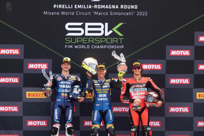 Dopo la bellissima gara1 in gara2 della Supersport si è replicato lo stesso podio anche se, ovviamente, la dinamica della corsa è stata molto diversa. Ieri a tagliare il traguardo per primo era stato Baldassarri, salvo poi essere retrocesso al secondo posto perché uscito dalla pista nella penultima curva.