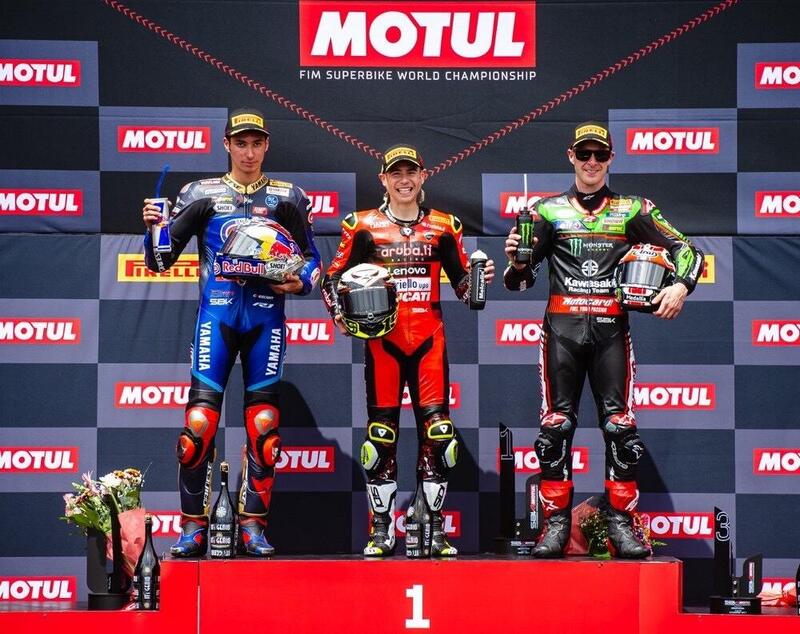 Quarto posto per Andrea Locatelli davanti alla coppia Honda, con Xavi Vierge capace di precedere Iker Lecuona. Alex Lowes era bravo nel finale a superare un sorprendente Scott Redding, ottavo con la M 1000 RR con una “esteticamente discutibile” livrea vintage. Solo nono Rinaldi con l’altra Ducati ufficiale, davanti a Loris Baz e ad un bravissimo Xavi Fores, salito per la prima volta sulla Panigale V4 del Team GoEleven solo questa mattina. AxelBassani non ha certamente brillato ed ha terminato dodicesimo,davanti al rookie Luca Bernardi. Hanno chiuso la zona punti Kohta Nozane ed Eugene Laverty.