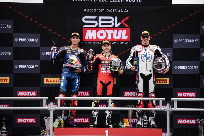 Capolavoro di Alvaro Bautista a Most in Gara1. Lo spagnolo prima resta paziente alle spalle dei due galletti Jonathan Rea e Toprak Razgatlioglu che si superano ad ogni curva, e poi quando i due di testa rallentano anche a causa di alcune gocce di pioggia, sferra l’attacco decisivo ed una volta in testa martella sul passo dell'1’32 e vince con oltre due secondi di vantaggio sul turco della Yamaha.