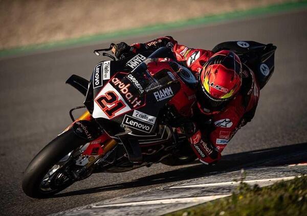 Il bergamasco è arrivato a 72 millesimi da Bautista mentre il distacco del pilota Ducati dal suo compagno di squadra supera i due decimi. Per quanto riguarda la parte alta della classifica questi test ufficiali hanno confermato quanto avevamo visto a Jerez e a Portimao, con Rinaldi e Locatelli più vicini o addirittura più veloci di alcuni dei fantastici tre. Sorprendono ma solo in parte il sesto posto di Dominique Aegerter ed il settimo di Phillip Oettl. Lo svizzero si con ferma un gran pilota e sembra essersi adattato in fretta alla Superbike. Il tedesco del team GoEleven sembra poter sfruttare l’esperienza maturata nel suo primo anno di Superbike ed ha trovato subito un ottimo feeling con la V4 in versione 2023, cosa che invece non è riuscita subito ad Axel Bassani e a Danilo Petrucci, oggi decimo ed undicesimo, che hanno mostrato chiari segnali di miglioramento, nonostante un contatto abbia fatto cadere entrambi. Tra Oettl e Bassani si sono inseriti Iker Lecuona e Remy Gardner.