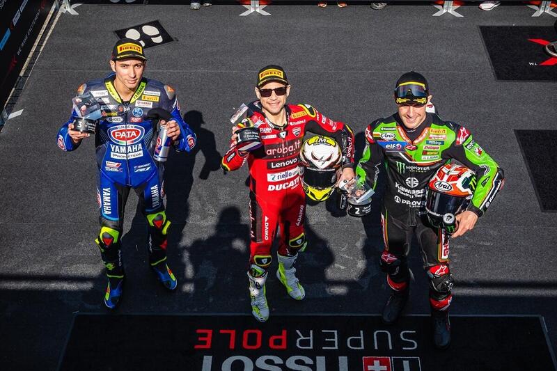 Terzo posto per Toprak Razgatlioglu, che dopo essere stato attaccato e Bautista e Rea nei primi giri, ha poi cercato solamente di mantenere la posizione. La sua Yamaha su questa pista non è competitiva come in altre e la mancanza di trazione in accelerazione tarpa le ali al pilota turco. Anche se solo nella gara sprint, questa volta Alex Lowes è stato per molti giri con i magnifici tre, per poi concludere in quarta posizione, a poco più di un secondo da Razgatlioglu. La partenza della gara sprint è stata ritardata a causa della rottura del motore della BMW di Loris Baz, che ha imbrattato la pista. Per questo motivo la gara è stata ridotta a soli otto giri, ma non per questo ha regalato dello spettacolo. I primi quattro se ne sono andati dopo pochi giri e qualche sorpasso si è visto solo nel gruppo degli inseguitori, dove i due italiani Andrea Locatelli ed Axel Bassani hanno lottato con Dominique Aegerter e Scott Redding.