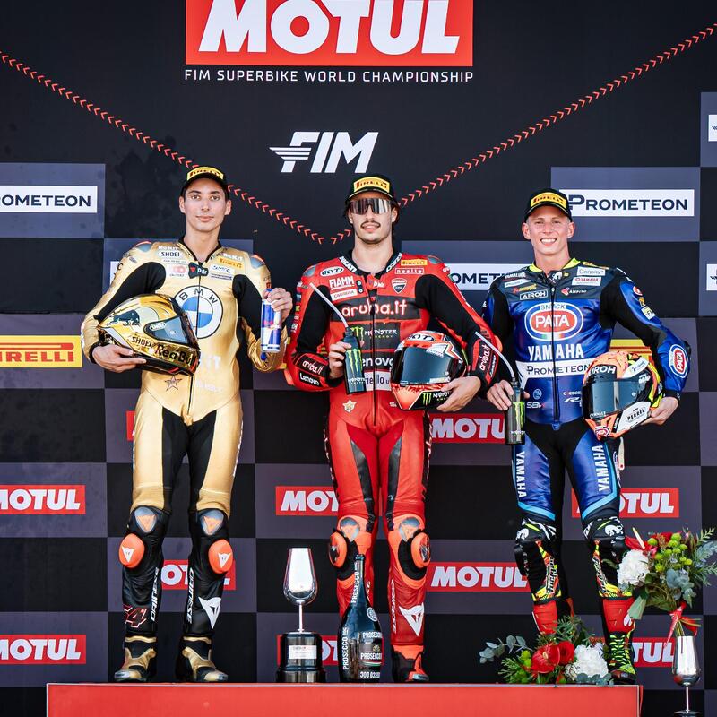 Un Bulega da paura, che ha tolto il sorriso dal volto di Razgatlioglu, sorpreso da un ritmo così veloce. I due ci hanno messo solo tre giri a fare il vuoto alle loro spalle e alla fine a vincere la lotta per la terza posizione nel gruppo degli inseguitori è stato Alex Lowes che ha preceduto i nostri Danilo Petrucci e Andrea Locatelli.