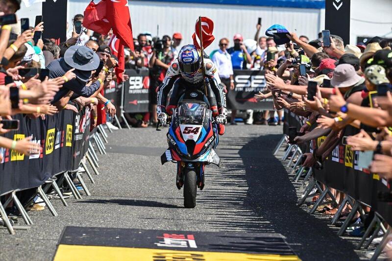 ma dura poco perché Bulega raccoglie il testimone del suo sfortunato compagno di squadra e si mette alle calcagna di Razgatlioglu. Negli ultimi due giri i due sono vicini e spremono al massimo le loro moto sul lungo rettilineo dei box. Il giovane italiano ce la mette tutta ma non basta. Toprak non molla un millimetro e vince la volata finale. Che gara!