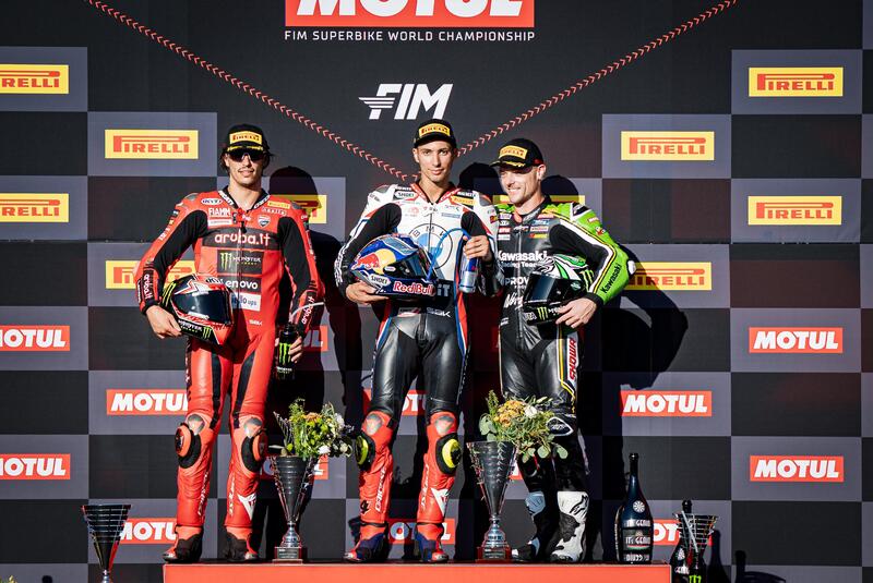 Per il funambolo turco è la quindicesima vittoria stagionale, la tredicesima di fila. Un record nel record. Alla fine a salire sul podio assieme a loro è Alex Lowes che si conferma i suoi enormi progressi e precede i due italiani Andrea Iannone e Danilo Petrucci sulle loro Ducati private. In sesta posizione si rivede Jonathan Rea, davanti a Michael Van der Mark che ha perso terreno e posizioni nei giri finali. Garrett Gerloff porta a tre il numero di BMW nelle prime otto posizioni e precede un sorprendente Xavi Vierge e le tre Yamaha di Aegerter, Locatelli e Gardner. Completano la zona punti Iker Lecuona, Scott Redding e Axel Bassani, che porta a casa un punticino, davanti all’ex rivale Michael Ruben Rinaldi. Bautista risalito in sella ha concluso diciannovesimo.