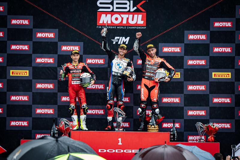 Il team Honda HRC festeggia il sesto posto di Iker Lecuona ed il settimo di Xavi Vierge (penalizzato per non aver rispettato il tempo minimo stabilito per il cambio gomme). Chiude all’ottavo posto Andrea Locatelli, rialzatosi dopo una scivolata, mentre la nona posizione di Michael Ruben Rinaldi riporta un po di ottimismo nel Team Motocorsa. Incredibile il decimo posto di Alessandro Delbianco al debutto sulla Yamaha R1 SBK. Il pilota italiano è notoriamente veloce sul bagnato ed è stato bravissimo a non commettere errori e a non lasciarsi sfuggire l’occasione di cogliere un grande risultato, che si spera possa aiutarlo nel proseguo della sua carriera.