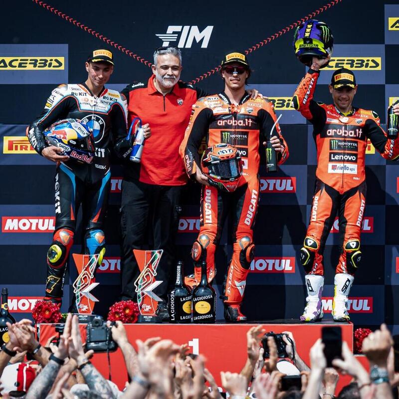 Oggi Alvaro Bautista è stato in grado di raddrizzare un fine settimana che era partito male sin dal venerdì. Il suo terzo posto di Gara1 cancella in qualche modo la tripla scivolata di cui è stato vittima nelle prove libere. Non solo per il risultato in sé, ma anche e soprattutto perché lo spagnolo ha compreso quale fosse il problema tecnico che lo ha portato a cadere. I chilometri percorsi nelle sessioni odierne, compresa la gara, gli hanno permesso di acquisire dati importanti sul comportamento della sua V4R. Ma il ritmo di Bulega e Razgatlioglu rimane inarrivabile e la nostra percezione è che questo terzo posto rifletta quelle che sono le sue attuali potenzialità.