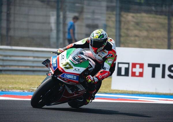 Poi Alex Lowes e la Honda di Iker lecuona, mentre Xavi Vierge è diciannovesimo ed ancora dolorante al piede infortunato a Most. Lo spagnolo è preceduto da Jonathan Rea, solo diciottesimo, e seguito dal rientrante Michael Ruben Rinaldi.