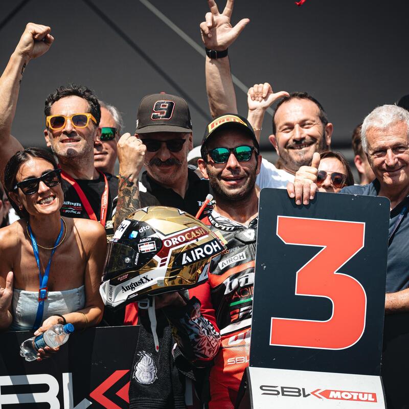 Tre vittorie proprio a casa del “nemico” sono un bottino estremamente piacevole per Toprak Razgatlioglu che le ha fortemente volute, ma che è stato facilitato dalla caduta dell’incolpevole Bulega nella Superpole Race, che non solo ha costretto l’italiano al suo terzo zero della stagione, ma che lo ha posizionato in decima posizione sulla griglia di partenza di Gara2. Un vantaggio che ovviamente il fenomeno turco ha sfruttato al massimo, tirando come un matto nei primi giri ed accumulando un vantaggio incolmabile. Nicolò ce l’ha messa tutta e in quattro giri si è portato alle spalle del suo grande rivale che era ormai troppo lontano. Con le due prime posizioni saldamente nelle mani di Toprak e Bulega, è stato Alvaro Bautista ad aggiudicarsi la lotta per il terzo gradino del podio, piegando la resistenza di Andrea Locatelli e Danilo Petrucci che hanno concluso al quarto e quinto posto, mentre Iker Lecuona ha terminato sesto davanti a Sam Lowes.