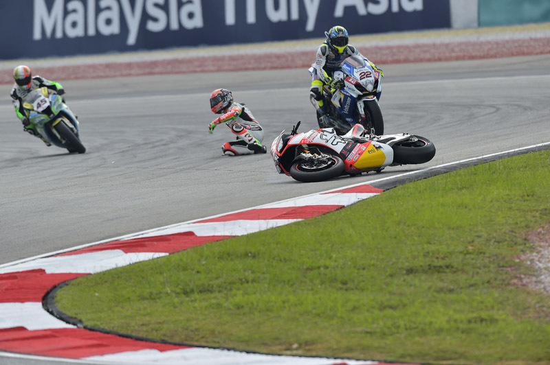 «Gara due si è conclusa presto e male. Ero partito bene, ma mi sono trovato Sykes all’esterno della curva che mi ha urtato e la mia moto è partita per la tangente. In gara due il mio obiettivo era quello di stare più vicino ai primi, ma purtroppo ………è andata così».