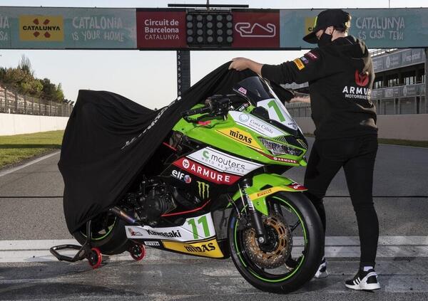 Il team Provec WorldSS300 si è presentato alla stampa mercoledì 31 marzo, in una bellissima conferenza allestita sul rettilineo dei box dell’autodromo di Barcellona. E’ la squadra dell’azienda che gestisce anche il team KRT, quello che da sei anni consecutivi si laurea campione del mondo SBK con Jonathan Rea e che nella 300 punta tutto su Ana Carrasco, che si potrebbe definire la versione femminile del nordirlandese. Campionessa del mondo di categoria nel 2018, Ana possiede la stessa determinazione del Cannibale e proprio come lui ha già infranto molti record. Ha debuttato nel CEV nel 2011 a soli 14 anni, ed è diventata subito la prima pilota donna a conquistare punti nel campionato nazionale spagnolo 125cc.